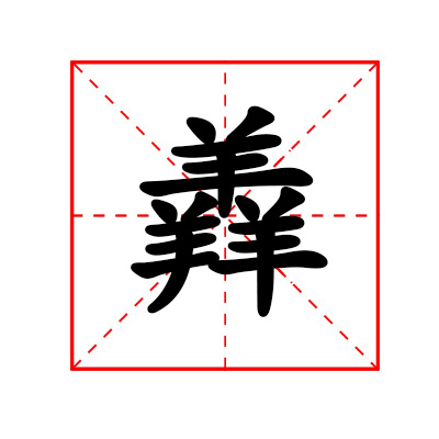 這個字讀【cū】,也是"粗"字的異體字。從字形上看,一頭大鹿兩頭小鹿,死死地頂在一起,似乎彼此混攪,非常有力氣??墒?,實際只表達(dá)了動粗的意思。