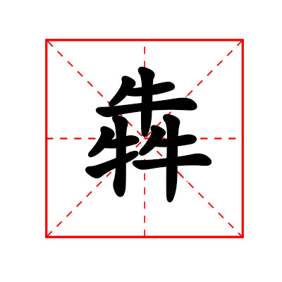 這個字讀【bēn】,也是"奔"的異體字。一頭牛就力大無窮了,何況三頭牛成隊列一起前進(jìn),那力量不言而喻了。這個字實際是"奔跑、急匆匆"的意思。
