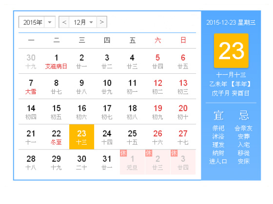 今天是2015年12月23日,星期三。