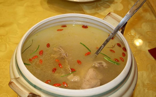 肉類需新鮮,異味少,血污少,以保證湯的質(zhì)量;此外,須搭配一兩樣保健之物,如藕、百合、山藥、蘿卜等;另加一兩樣甘甜之物,如棗、葡萄干、桂圓干;還可適當加入一兩樣莖菌類及干果類,如香菇、黑木耳、花生、蓮子等。