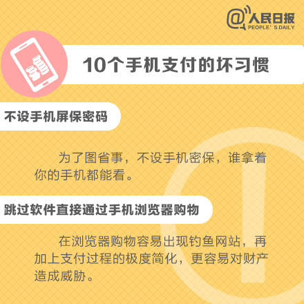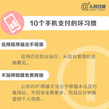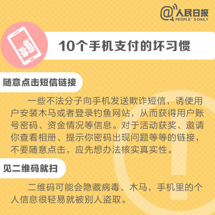 手機給人們生活、娛樂帶來方便的同時,也給我們帶來了安全隱患,使用手機時的一些"壞習慣"一定要改掉,保護好個人網(wǎng)絡(luò)賬戶安全,避免不必要的損失。