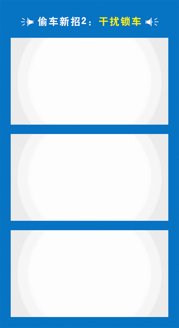 你停好車,關(guān)上門,拿出鑰匙,對著車子"嘀嗒"一聲,然后,頭也不回地走了。然而,就在你按下鎖車鍵的同時,偷車賊也按住了電子干擾器,所以此時車子并未真正鎖上。等你走遠了,偷車賊就像鉆進了自家的車一樣,淡定地忙活開來咯。
