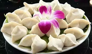 遼寧人特別喜歡做燙面水餃,燙面水餃對和面有極高的要求,面粉一分為二,一部分面粉慢慢加熱水,用筷子不斷攪拌成雪花狀,另一半面粉加入涼水,同樣的做法。之后將兩部分面粉分別揉成團(tuán),再合二為一揉成大面團(tuán)餳30分鐘。燙面餃子一般蒸著吃,口感更好,非常勁道。