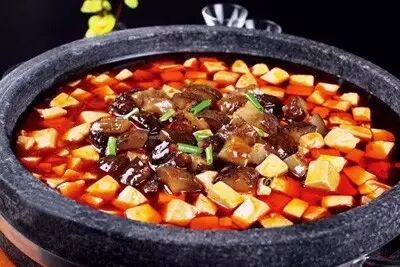 此菜把牛腱子肉、牛蹄筋加入大量的蔬菜料、剁椒、牛肉醬一起高壓,成品肉質(zhì)細(xì)嫩,蹄筋爽滑,口味香辣。