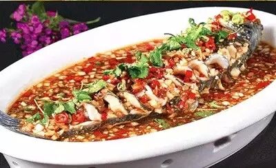 這道菜是根據(jù)經(jīng)典菜肴—饞嘴魚改良而來,圓蔥碎、野山椒碎、剁椒碎炒香后淋入蒸魚豉油、生抽和陳醋,熬好的味汁酸辣爽口,口味遠(yuǎn)遠(yuǎn)超過饞嘴魚。