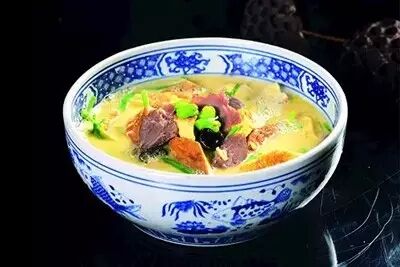 此菜用新鮮鴨蛋煎制的鴨蛋糕,同春韭、咸肉、黑木耳、鮮蠶豆仁燒制成湯菜,成菜色澤明艷、湯醇軟滑、咸鮮利口,是一款老少皆宜的養(yǎng)生保健菜。