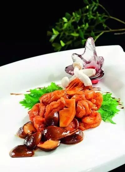 2、鍋內(nèi)放入菜子油,倒入事先煨制好的魚面筋、春筍、香菇,淋入蠔油、剩余的雞湯大火燒開,用鹽、白糖調(diào)味,淋入濕淀粉勾芡,出鍋前淋入蔥油即可。