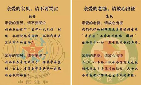 這是既作為母親又是一名軍人醫(yī)生的張丹在第四批赴馬里維和部隊正式組建完成之際,向自己的愛人和5歲的孩子的深情告別。
