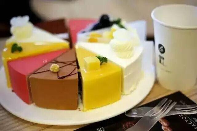 樹莓慕斯+藍莓慕斯+抹茶乳酪+巧克力百香果+提拉米蘇+重乳酪