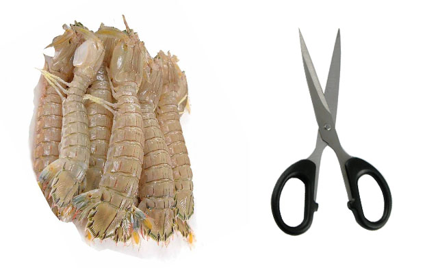 首先將皮皮蝦肉不多的頭分離掉,一手捏住身子,一手將皮皮蝦的頭扭掉就好了。然后需要用到剪刀,將皮皮蝦的尾部一剪子剪掉,然后不要扔,因?yàn)槔锩孢€有很多肉。用剪子沿著皮皮蝦身子的兩邊將蝦殼剪掉,這個(gè)要注意不要剪的過(guò)多而浪費(fèi)蝦肉,最后,把背部的殼和腹部的殼分離開(kāi)就可以吃了,這個(gè)方法安全指數(shù)較高。
