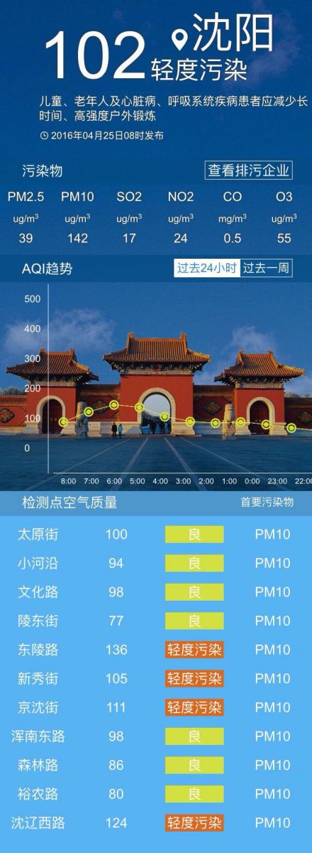 接下來(lái)共同關(guān)注沈陽(yáng)未來(lái)幾天的具體天氣情況:今天白天大部分地區(qū)以晴為主,今天風(fēng)力不大,北風(fēng)3-4級(jí),空氣質(zhì)量輕度污染,最高氣溫20℃左右;今天夜間北部地區(qū)將是小陣雨天氣,最低氣溫6℃左右。