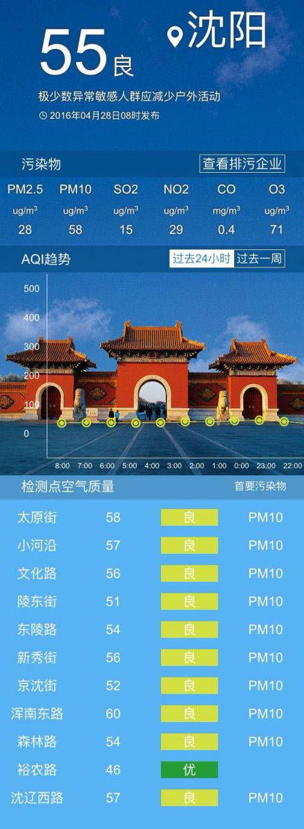 接下來(lái)共同關(guān)注沈陽(yáng)未來(lái)幾天的具體天氣情況:今天白天沈陽(yáng)的天氣是晴空萬(wàn)里,陽(yáng)光普照,白天最高氣溫為19℃左右,北風(fēng)3-4級(jí),空氣質(zhì)量良好;最低氣溫為5℃左右。