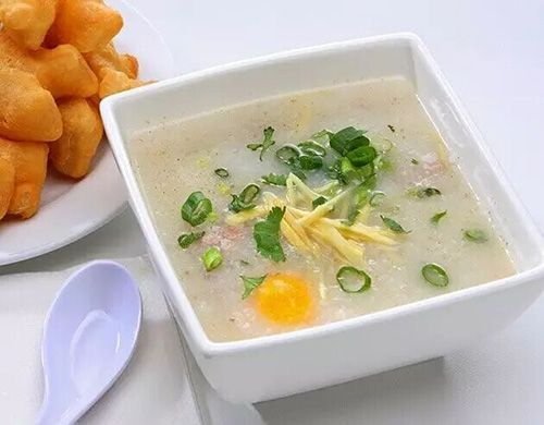 將魚(yú)肉切成薄片,和生姜一起放入粥內(nèi)。還可加入醬油、胡椒、蔥和油炸洋蔥等。