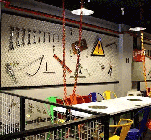 集裝箱風格餐廳。一個3D的屏幕墻播放著大韓民國的逗比綜藝,墻壁上的錘子、扳手、三角尺都像是裝修現(xiàn)場。歐巴們確實很帥,但這不是重點,重點是食物超美味。