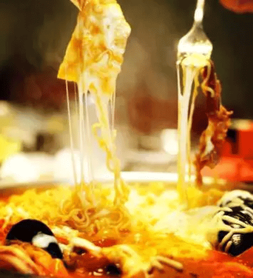 他家的芝士年糕火鍋,滿滿當當?shù)暮ur牛肉可是真材實料,秘制的湯汁,加上新西蘭的芝士,待咕嘟咕嘟冒泡時,濃郁的香味已經完全滲進食物里,一叉下去完美的拉絲,真的是不可錯過。