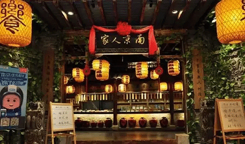 除了地道南京特色的吃食,南京人家勝在用盡心思把舊時金陵的氛圍做足,來自江南農村的老擺件、實木四方桌椅、棚頂掛滿的紙燈籠、充滿歷史感穿著舊時中式服裝的老門童,無一不在渲染濃濃的南京氛圍。