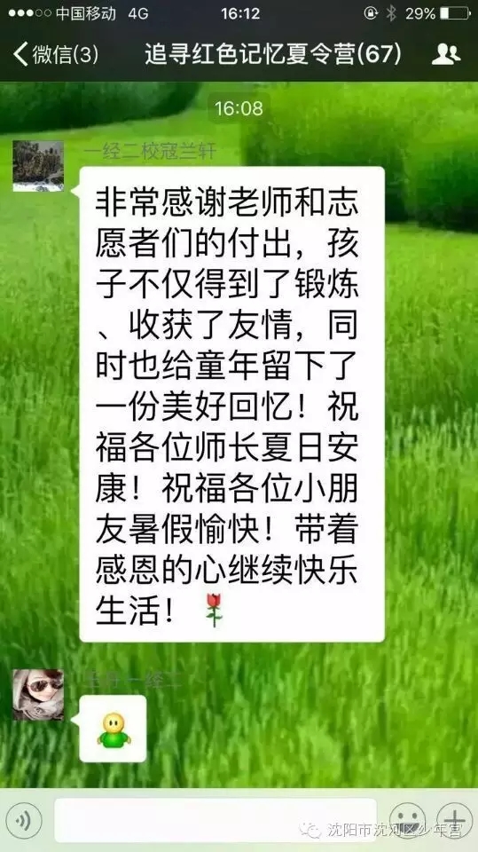 兩天的活動(dòng)在少年宮老師細(xì)心周到地安排下,孩子們過得既充實(shí)又開心。滿洲省委舊址里認(rèn)真地聆聽講解、樹蔭下聽老英雄追憶往事,沈陽市團(tuán)校內(nèi)揮汗如雨的歷奇訓(xùn)練、夜晚多功能廳內(nèi)興高采烈地聯(lián)歡、荷花池旁的駐足、科技館里探索科學(xué)世界的秘密……這一幕幕都深深地刻在了孩子們的腦海里,洪亮的口號(hào)是孩子們堅(jiān)定的信念,張張笑臉是活動(dòng)過程中成功的印記。白天孩子們共同享受團(tuán)隊(duì)生活的快樂,夜晚躺在床鋪上一起述說童年的趣事。閉營儀式上,同學(xué)們相擁而泣,短暫的兩天讓大家結(jié)下了深厚的友誼。