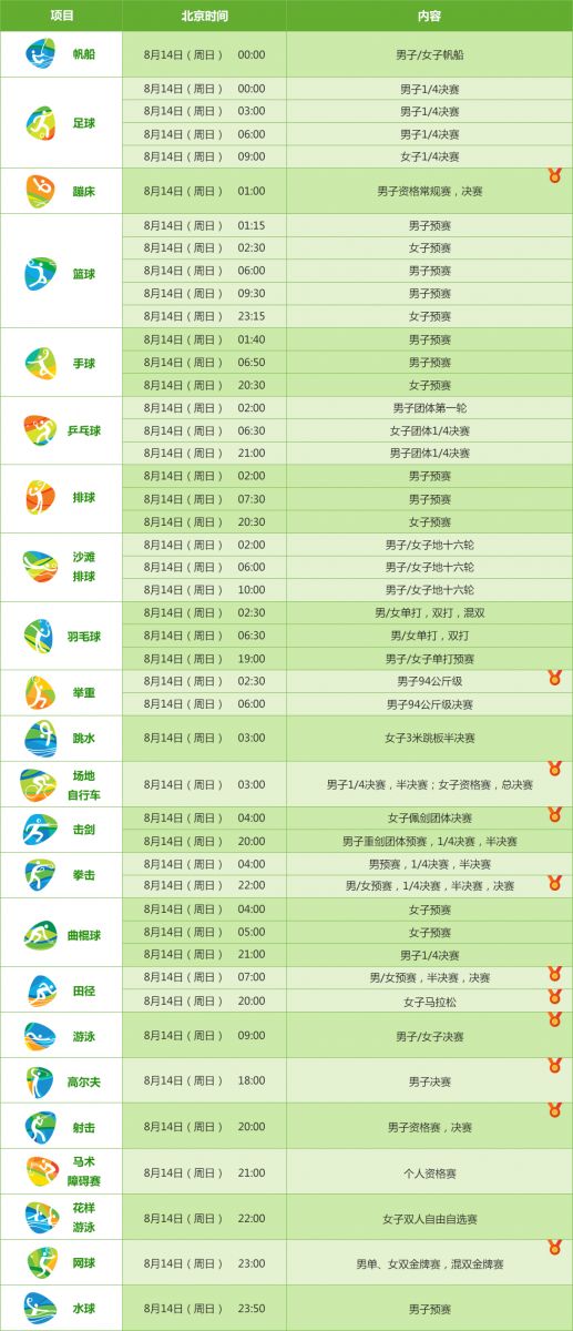 14日,做為倫敦奧運會該項目冠軍和世界紀(jì)錄保持者,孫楊或?qū)⒃谀凶?500米自由泳決賽迎來意大利名將帕爾特涅里的挑戰(zhàn)。此外,奧運會"三朝元老"董棟有望在男子蹦床項目實現(xiàn)衛(wèi)冕。