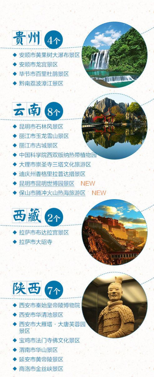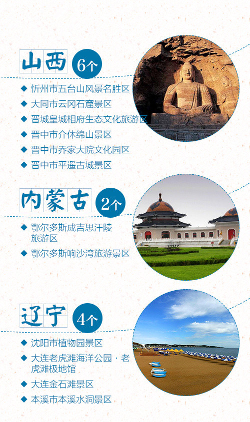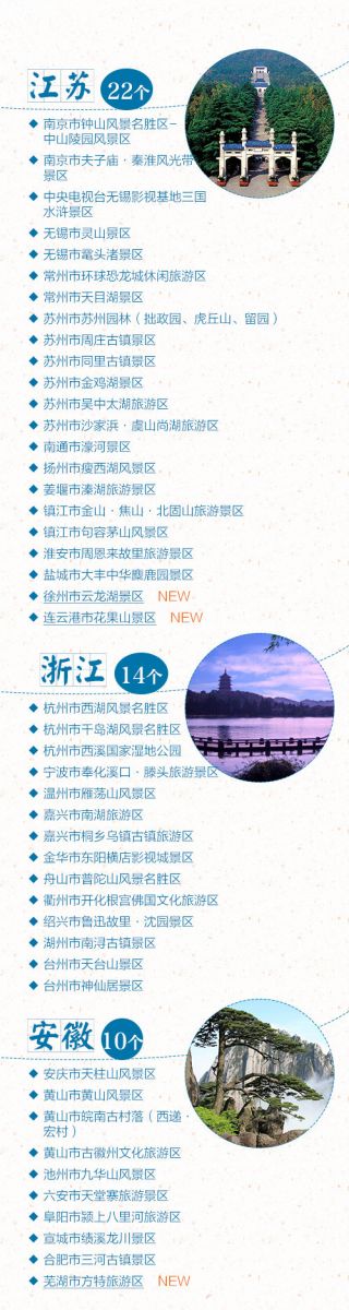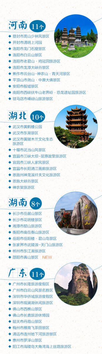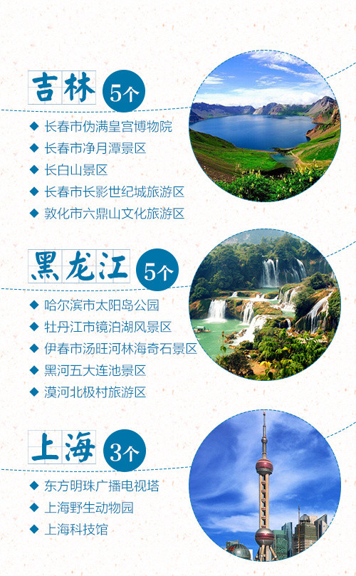 盼望著,盼望著,中秋節(jié)、國慶節(jié)的腳步近了~ 估計(jì)有小伙伴已經(jīng)做好了放假攻略。全國5A級(jí)景區(qū)新增江蘇連云港花果山景區(qū)、云南保山騰沖火山熱海旅游區(qū)等6家,對嚴(yán)重不達(dá)標(biāo)的兩家5A景區(qū)湖南長沙市橘子洲、重慶神龍峽景區(qū)摘牌。目前,全國5A景區(qū)共有217家,看看你想去哪里,留下你的足跡!