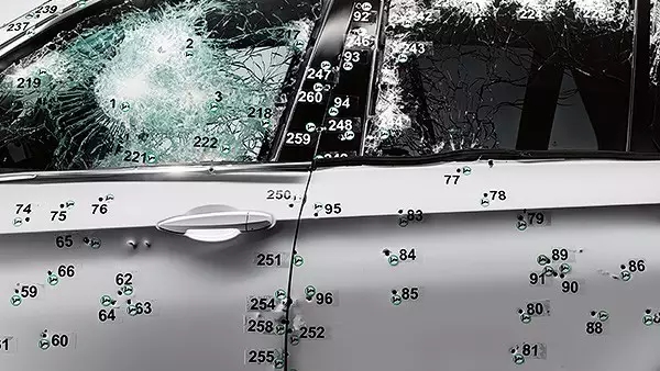 BMW防彈車都需要經(jīng)過官方認證,但是除官方認證規(guī)定的槍擊角度外,BMW還從可對車輛安全造成極大威脅的其他角度進行了成百上千次測試,安全等級其實遠超官方認證要求(根據(jù)BRV 2009指南測試)。