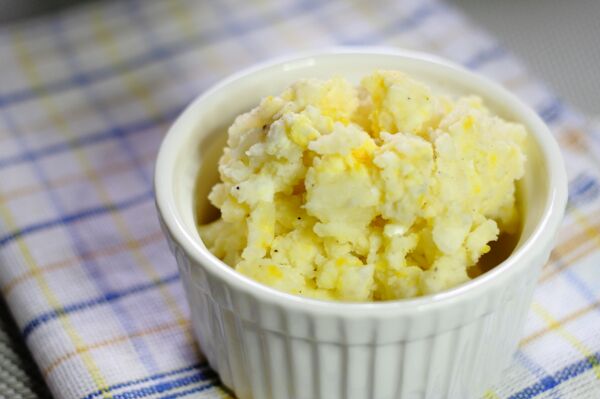 炒土豆泥時(shí),先加入少許烤香、捻碎的咸蛋黃炒至翻沙,再下入土豆泥,炒后的成品香味濃郁,而且不會(huì)粘鍋。