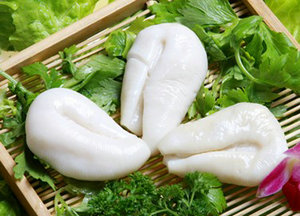 將烏魚蛋從罐頭內(nèi)取出,將其一片片揭開,用清水沖洗兩遍。鍋內(nèi)加入清水1500克,燒開后放入30克泡打粉、30克堿面調(diào)勻,下入烏魚蛋小火煮30分鐘倒出。按著這種方法反復(fù)操作三次,再用清水煮一次,即可使用,還可以用冷水浸泡,隨用隨取。烹調(diào)后,烏魚蛋沒有一絲腥味。