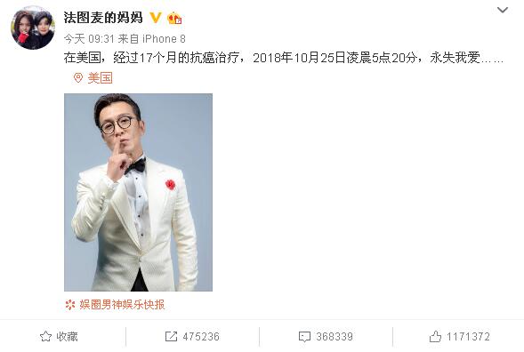 昨早一條爆炸性的消息傳遍了網(wǎng)絡(luò)。10月29日,主持人李詠妻子哈文發(fā)文宣布李詠因癌癥去世,年僅50歲。