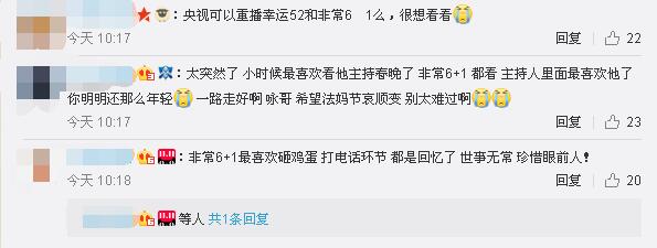 網(wǎng)友紛紛懷念:"從小看《幸運(yùn)52》、《非常6+1》,謝謝您帶給我們的歡樂(lè)!帶給我們這么多童年記憶!"