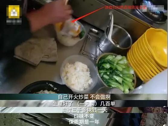 有人在外賣(mài)平臺(tái)上訂餐后,外賣(mài)餐館將速食料理包放入米飯中,在微波爐中加熱后即完成全部制作過(guò)程。外賣(mài)老板還承認(rèn),自己不會(huì)做飯!就依靠這些速食料理包,每天可接幾百單,最高收入達(dá)3000元一天。