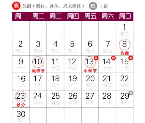 中秋節(jié)假期安排