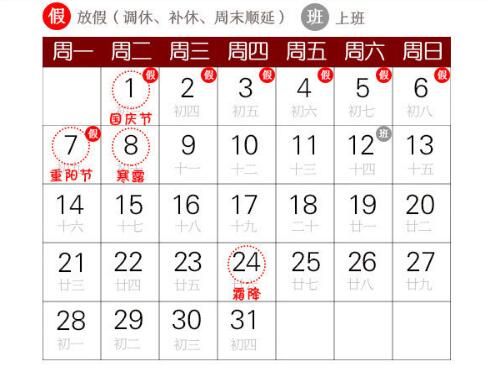10月1日至10月7日放假調(diào)休