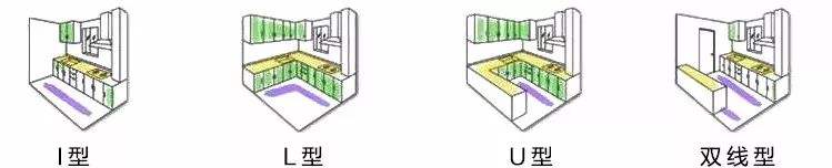 廚房布局的類型應(yīng)依據(jù)結(jié)構(gòu)、面積、高度以及廚房設(shè)備的具體規(guī)格進(jìn)行,有以下幾種類型可供參: