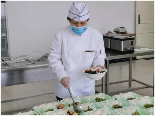 食品安全無(wú)小事,從原料采購(gòu)到食品制作再到送餐,餐飲中心工作人員都嚴(yán)格遵守操作規(guī)程,每一環(huán)節(jié)都嚴(yán)格把關(guān),每一項(xiàng)工作領(lǐng)導(dǎo)都嚴(yán)格監(jiān)管。工作期間,全體工作人員佩戴帽子、口罩,從健康檢查、晨檢、洗消到留樣更是一絲一毫都不能馬虎。食物制作完成后,裝入外賣(mài)保溫箱中,由專(zhuān)人用消毒后的專(zhuān)車(chē)統(tǒng)一配送到送餐點(diǎn)。在未來(lái)學(xué)生陸續(xù)返校后,將繼續(xù)沿用錯(cuò)峰就餐的分餐和送餐模式相結(jié)合的就餐方式。