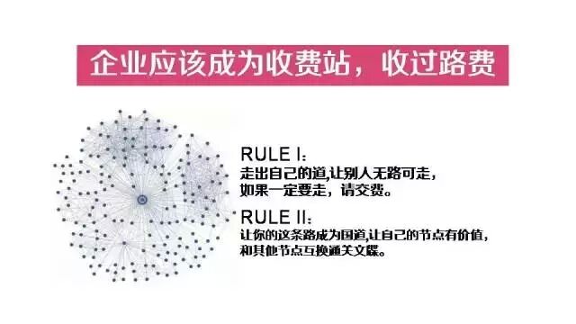 今天這個時代,每一個企業(yè)都應(yīng)該找到自己的路,設(shè)置自己的收費(fèi)站,來靠收費(fèi)過活。具體而言之,就是兩點(diǎn)規(guī)則: