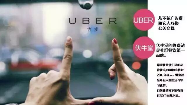 比如UBER,它從來不花廣告費(fèi),因?yàn)樗际呛蛣e人互換通關(guān)文牒,來做品牌推廣。再比如今天談起社群餐飲,很有可能你繞不開伏牛堂,因?yàn)槲覀冸m然規(guī)模不大,但足以成為概念的第一名,提前設(shè)立好了關(guān)卡。我們這場發(fā)布會沒有花一分錢,都是依靠互換通關(guān)文牒完成的資源置換啊。