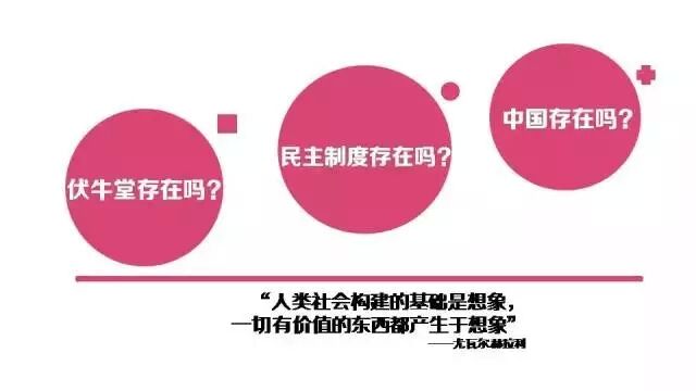 《人類簡史》這本書的作者尤瓦爾.赫拉利說過:"人類社會構(gòu)建的基礎(chǔ)是想象,一切有價(jià)值的東西都產(chǎn)生于想象。"例如我們今天的發(fā)布會存在嗎?其實(shí)不存在,它存在于我們的想象之中。再比如伏牛堂這家公司存在嗎?其實(shí)也是大家覺得它存在,它就存在了。民主制度存在嗎?中國存在嗎?這些其實(shí)都是我們的想象。
