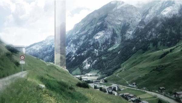 美國建筑師湯姆·梅恩設計了一座矗立在阿爾卑斯山上的酒店"7132塔",遠觀就如一把利劍插入山中。