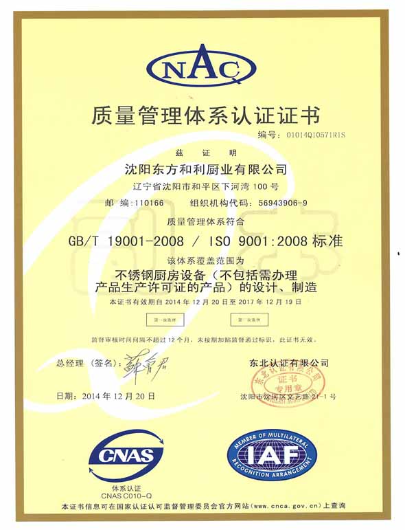 東方和利通過質量管理體系認證