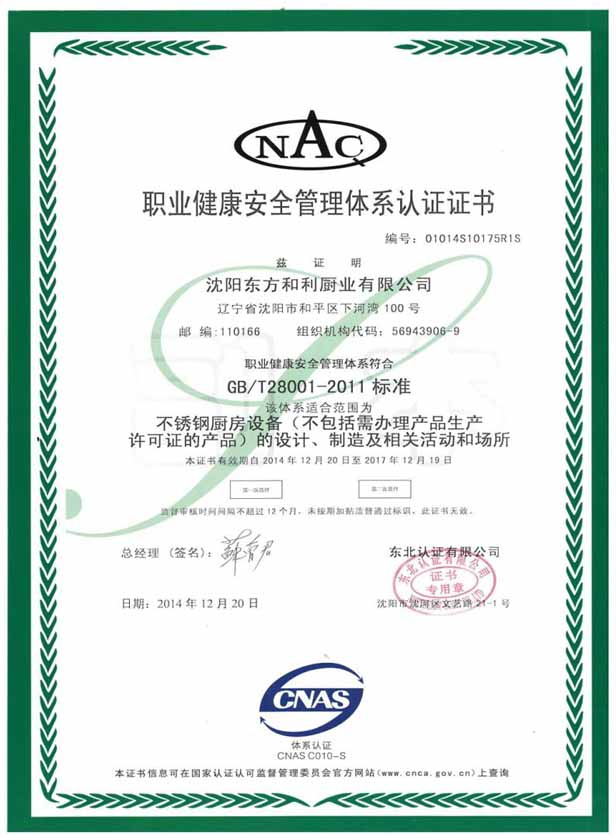 二、職業(yè)健康安全管理體系認證: