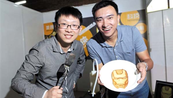 這個奇怪組合的誕生,其實源自于一次同學聚會。施侃樂和吳一黎都是清華大學軟件學院2003級的學生,四年時間里他們的宿舍都緊挨著。"在一次同學聚會上,我們倆突然蹦出了合作做一個3D煎餅打印機的想法,沒想到一拍即合,還真給做出來了。"施侃樂說。