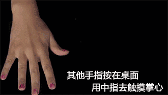其他手指按在桌面,用中指去觸摸掌心