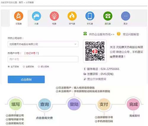 1、通過(guò)"熱付通-沈陽(yáng)市供熱行業(yè)便民繳費(fèi)平臺(tái)"跨行網(wǎng)銀及微信掃碼支付。