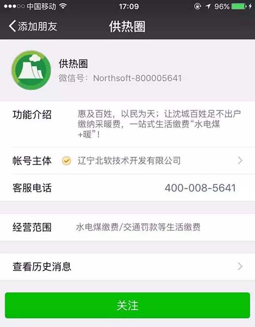 3、關(guān)注該平臺(tái)已開(kāi)通的供熱企業(yè)微信二維碼