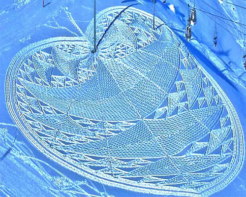 這些作品是這位叫Simon Beck的大叔,用腳在雪地上踩出來的。