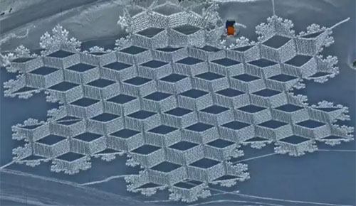除了二維雪地圖案,他還有3D作品。這位牛津大學(xué)學(xué)霸的立體幾何應(yīng)該學(xué)得不錯(cuò)!