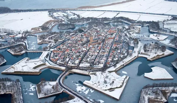 荷蘭納爾登是一個(gè)坐落在星形要塞之中的小鎮(zhèn),更特別的地方是它主要以堅(jiān)固的城墻和護(hù)城河圍繞建造而成的。在冬天的時(shí)候,那些保護(hù)這個(gè)小鎮(zhèn)的防御城墻和護(hù)城河都會(huì)結(jié)冰!