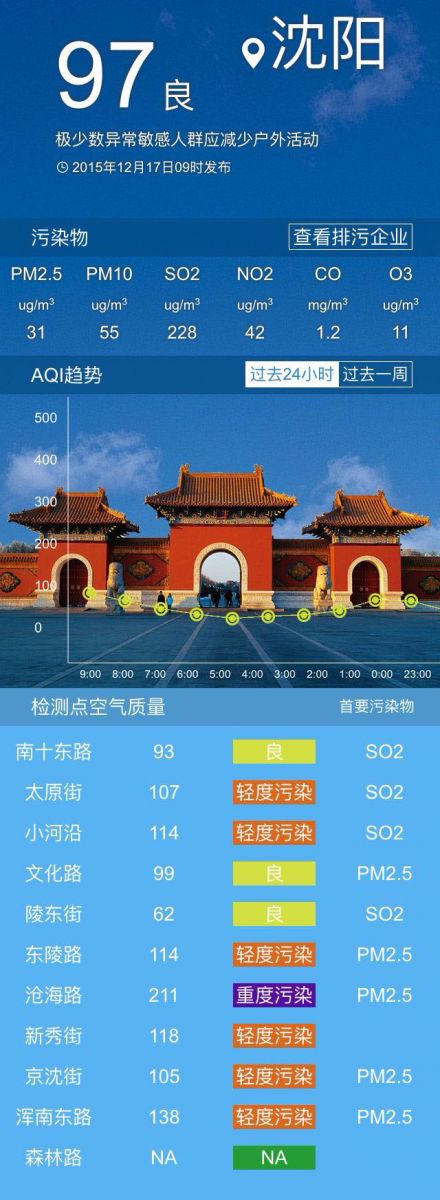 今天白天沈陽冷空氣勢力減弱,冰冷的空氣變得平靜下來,或多或少會影響到污染物的擴散和稀釋,但并不至于會出現(xiàn)討厭的霧霾。